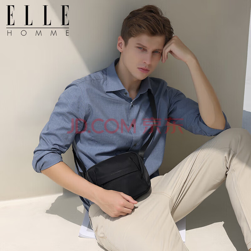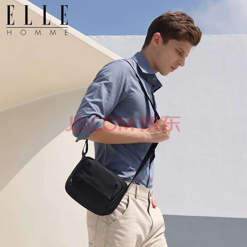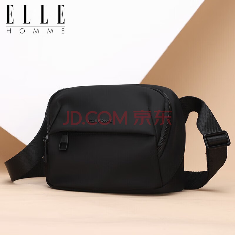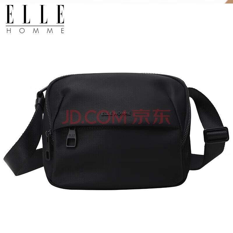 商品相册:ELLE HOMME男士单肩包 潮流轻便帆布斜挎包 防泼水休闲手机包男包08331黑色生日礼物送男友第