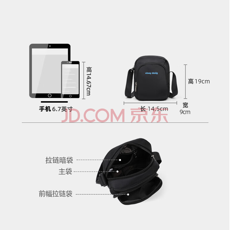 商品相册:viney单肩包男潮牌简约斜挎包女休闲日系轻便手机包包随身小挎包背包男第