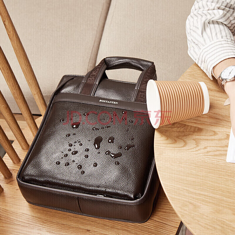 商品相册:波斯丹顿男士单肩斜挎包学生潮流背包大容量多功能手提包头层牛皮公文包第