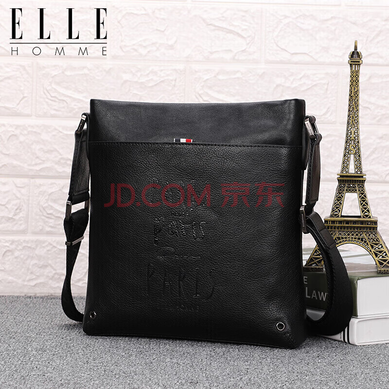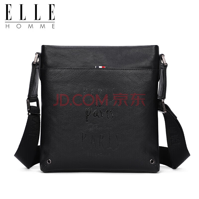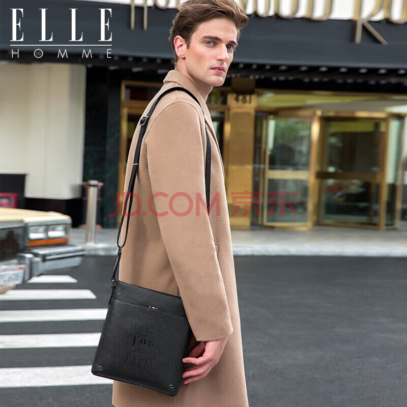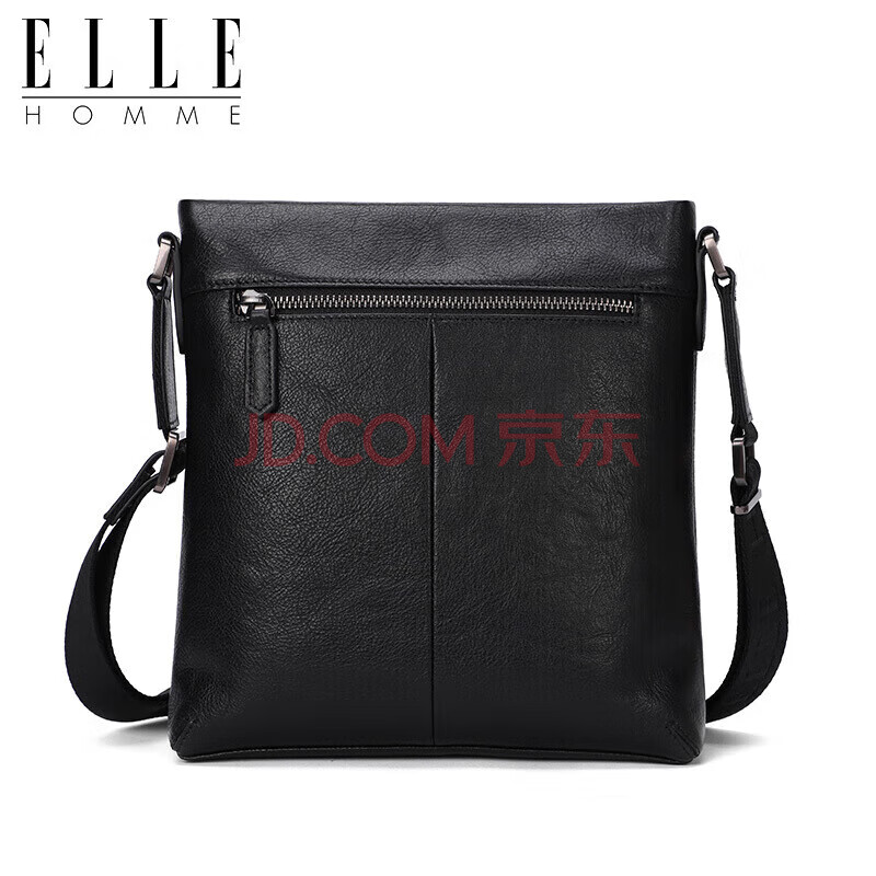 商品相册:ELLE HOMME 商务男士单肩包 头层牛皮时尚斜挎包大容量竖款男包01941黑色生日礼物送男友第