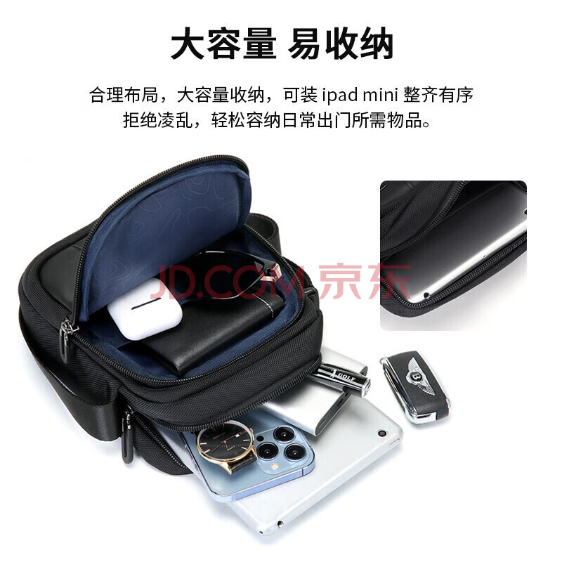 商品相册:高尔夫GOLF单肩包男士休闲斜挎包男大容量轻便手机包百搭小背包男女防泼水潮流挂包运动包5I796334J雾黑第