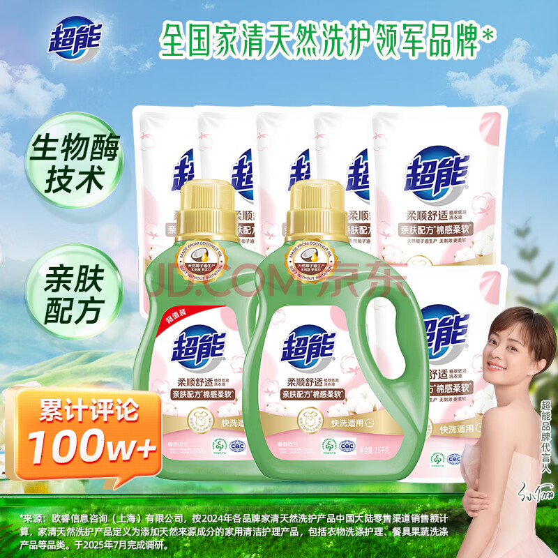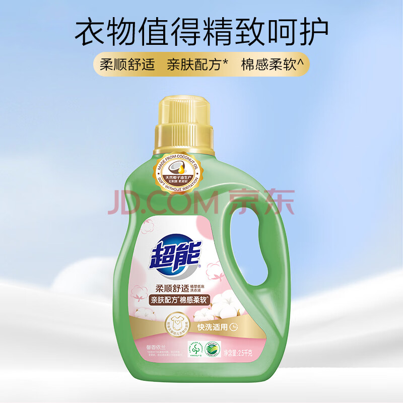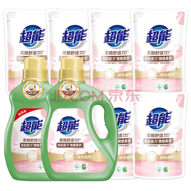 商品相册:超能柔顺舒适洗衣液 馨香依兰 16斤套装(2.5kg*2+500g*6)植物基配方第