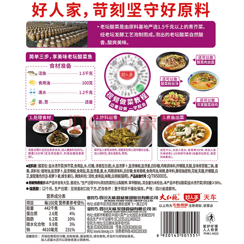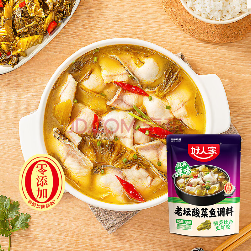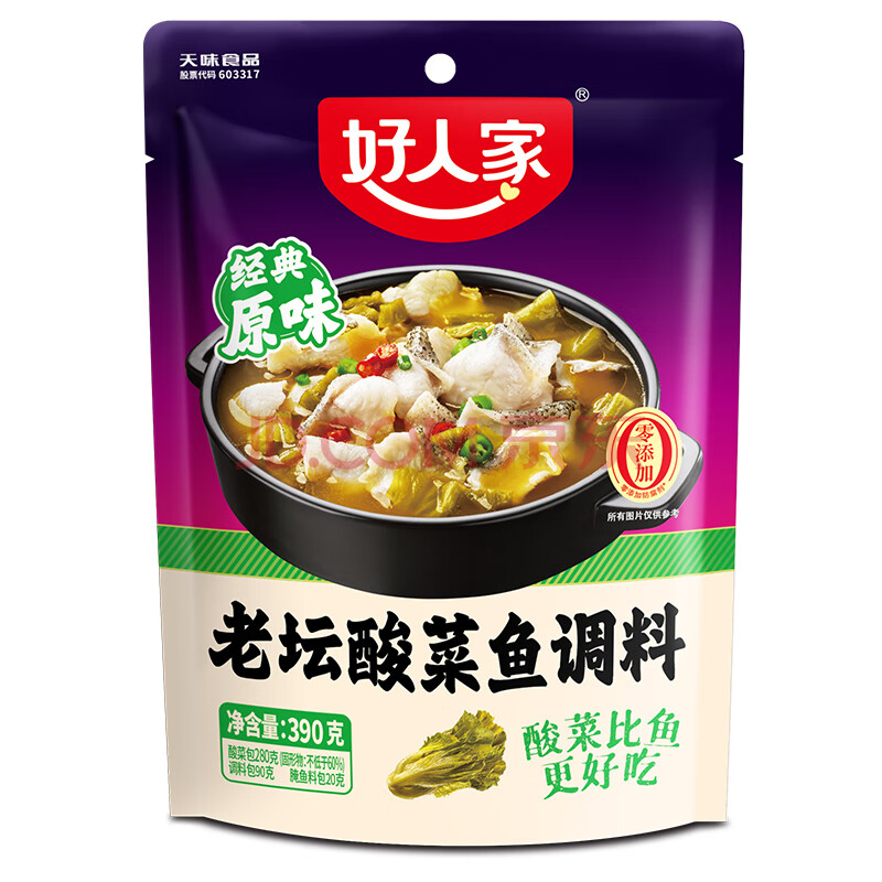商品相册:好人家老坛酸菜鱼调料390g【0添加防腐剂】 经典原味酸菜脆爽一料多用第