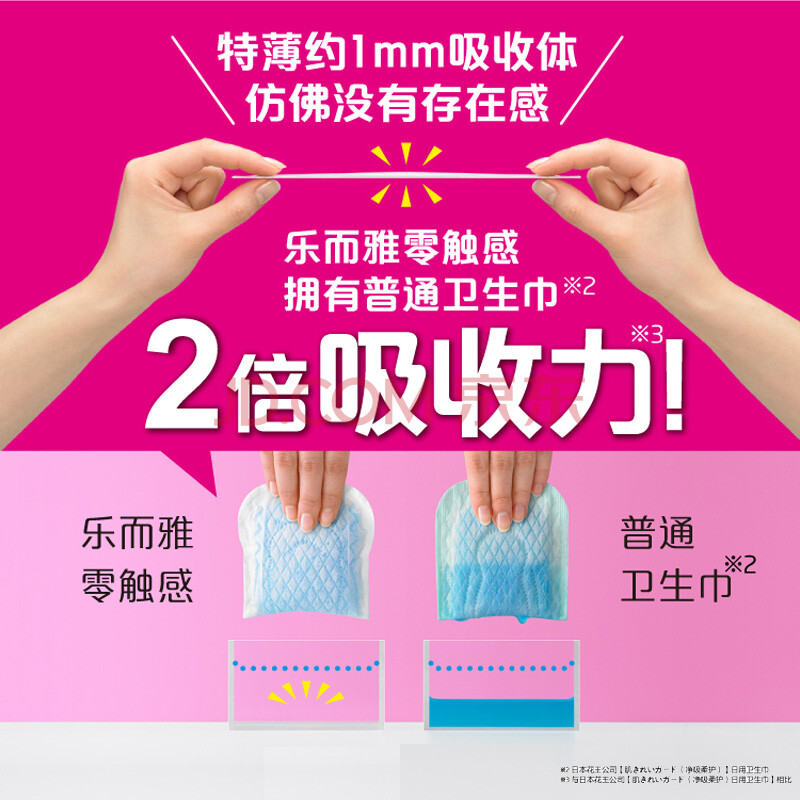 商品相册:乐而雅(laurier)花王卫生巾日用进口零触感姨妈巾超长丝薄无感护翼250mm19片第