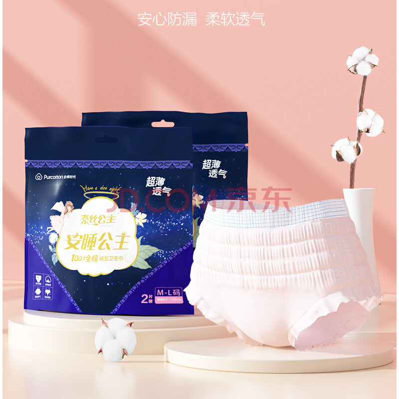 商品相册:全棉时代(PurCotton)奈丝公主安睡公主经期裤S-M码,2片/袋*5袋 共10片第
