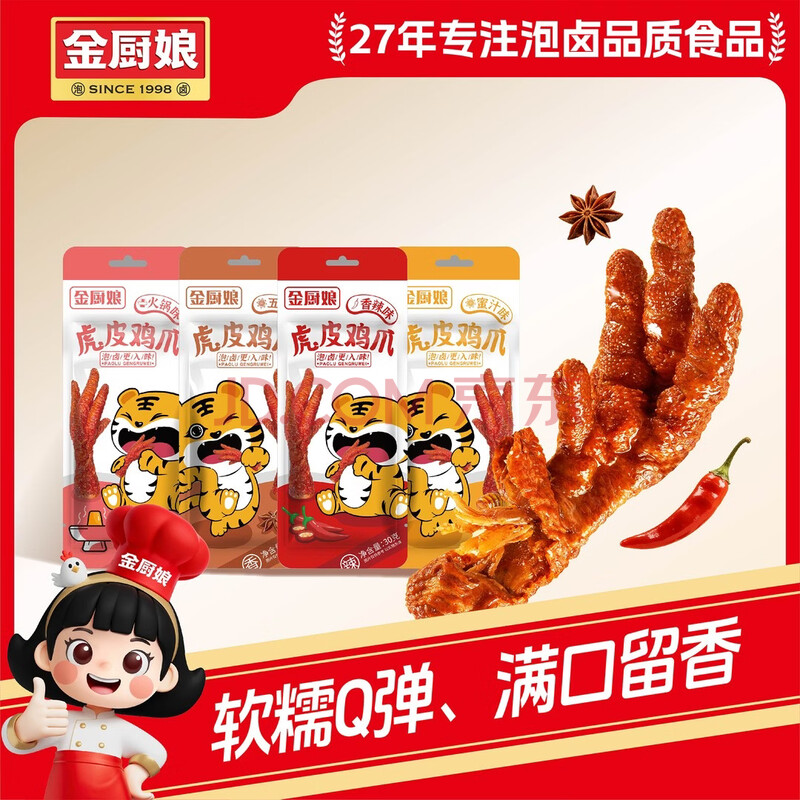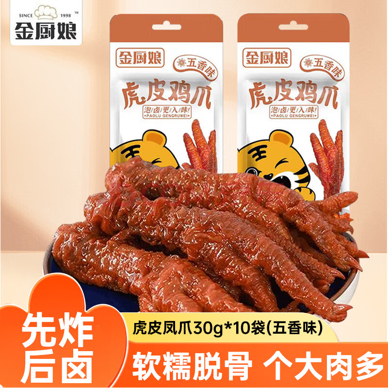 商品相册:金厨娘 虎皮凤爪30g*10袋(五香味) 虎皮卤味鸡爪 肉类休闲零食开袋即食第