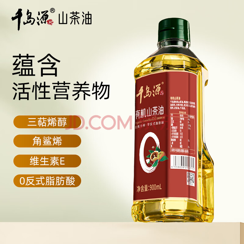 商品相册:千岛源有机山茶油900ml老树龄茶籽油 脱壳冷榨 零反式脂肪酸食用油第1张/共6