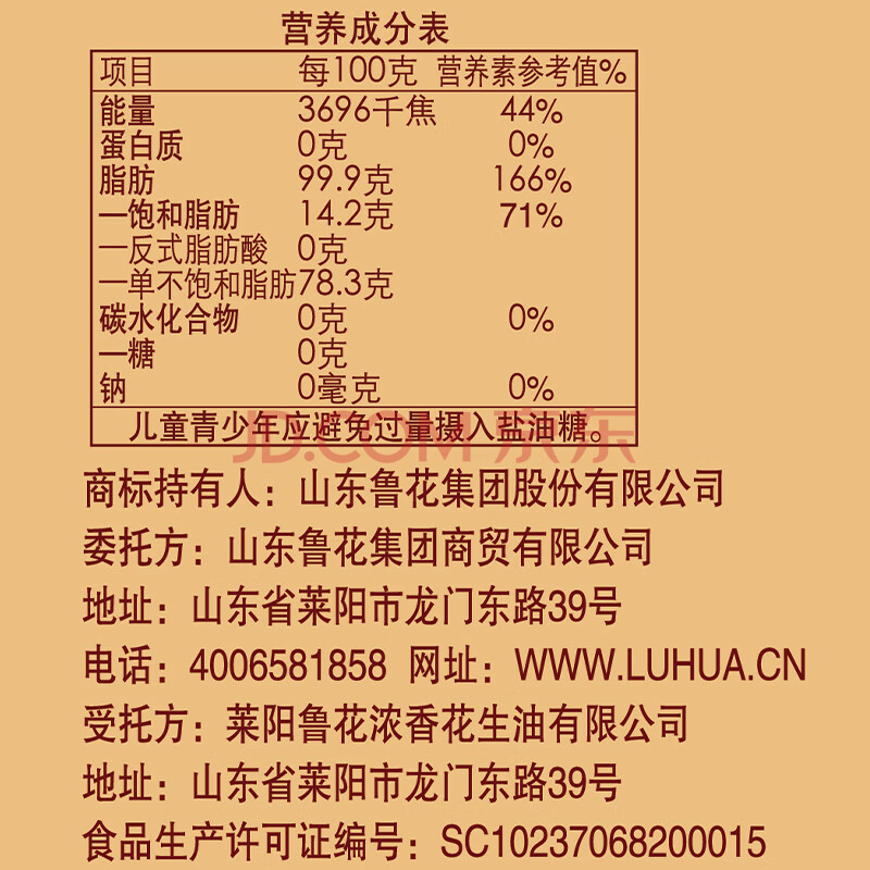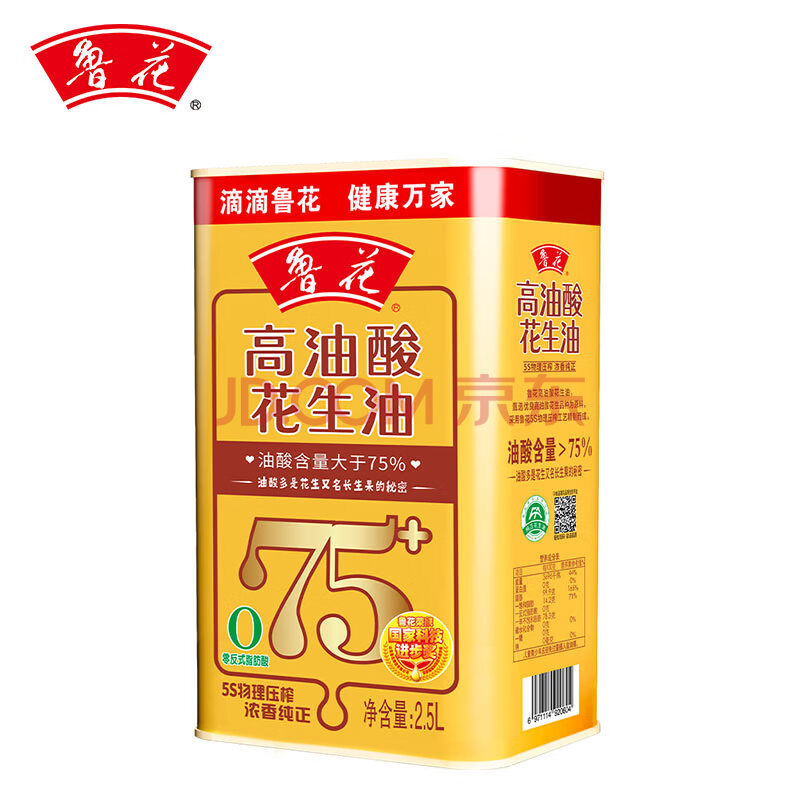 商品相册:鲁花【保真花生油】 高油酸花生油2.5L 铁罐装 5S物理压榨 第