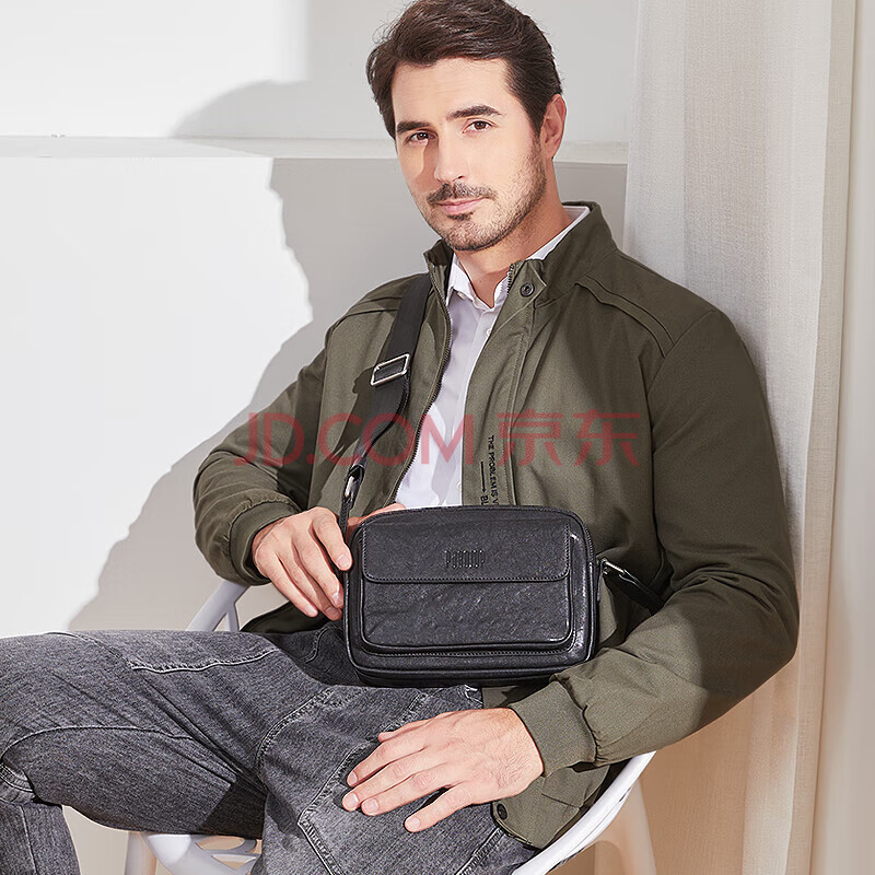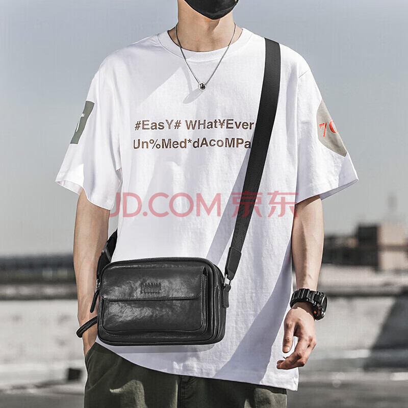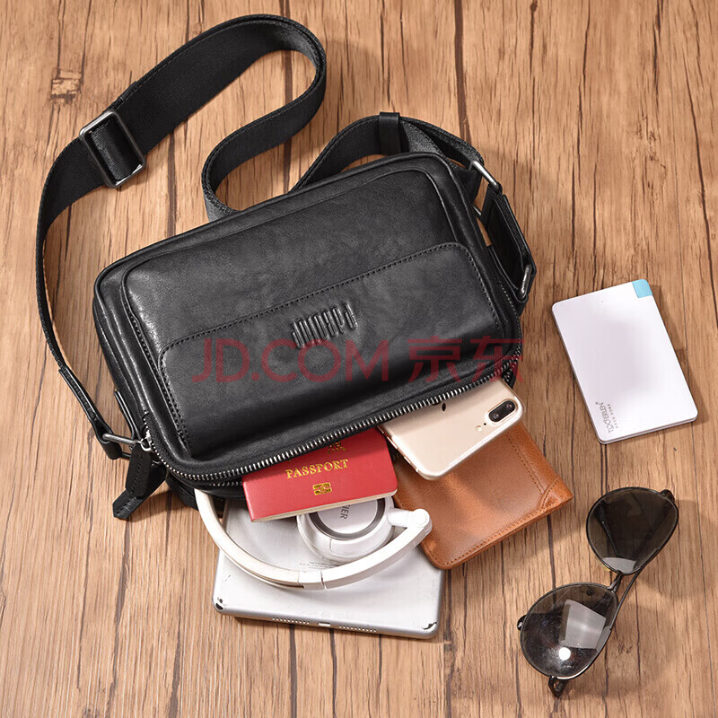 商品相册:派保爵男包真皮单肩斜挎包头层牛皮潮流单肩包百搭时尚横款个性小背包第