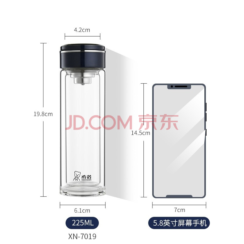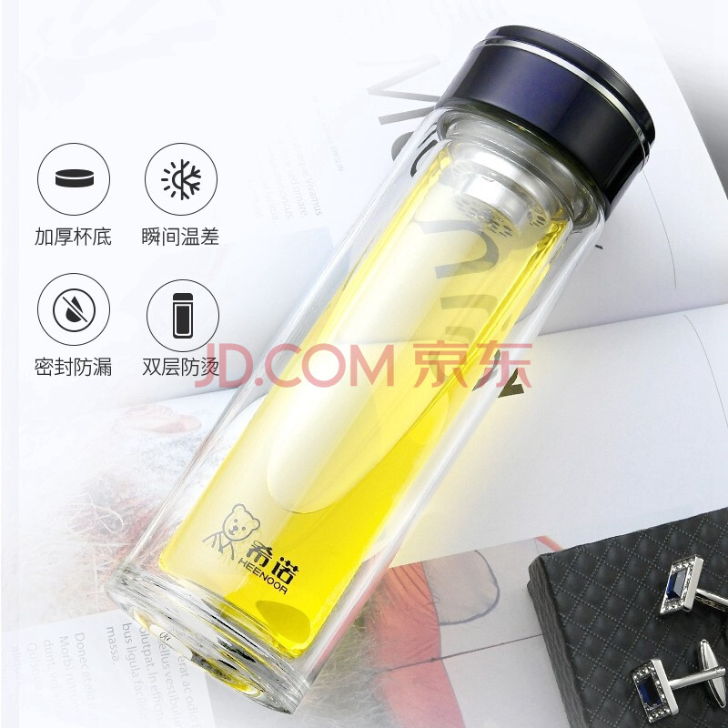 商品相册:希诺 玻璃杯双层隔热商务轻奢办公泡茶杯带茶隔小容量家用简约男女士便携杯子 XN-7019 225ml第