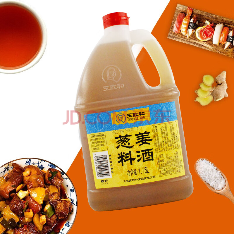 商品相册:王致和葱姜料酒1.75L 厨房常备 升级烹饪黄酒 提味增香 家用实惠装第