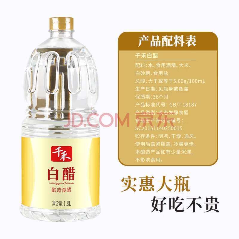 商品相册:千禾白醋5度 1.8L 大米酿造食用大桶家用商用除垢第