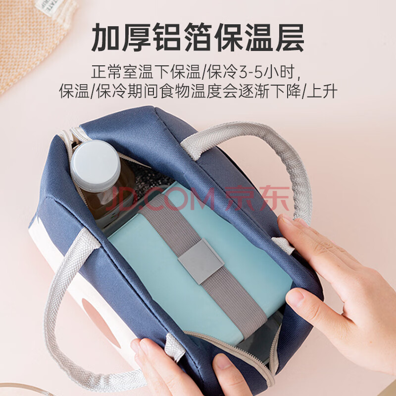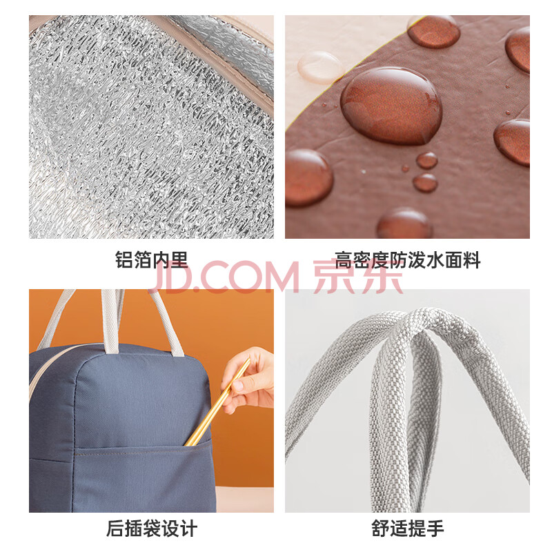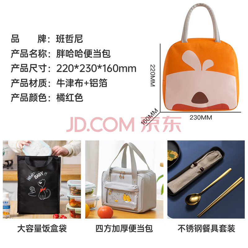商品相册:班哲尼 饭盒袋便当袋便当包保鲜提饭包多功能手提式带铝箔保冷保温包储奶袋包饭盒收纳袋收纳包 橘红色第