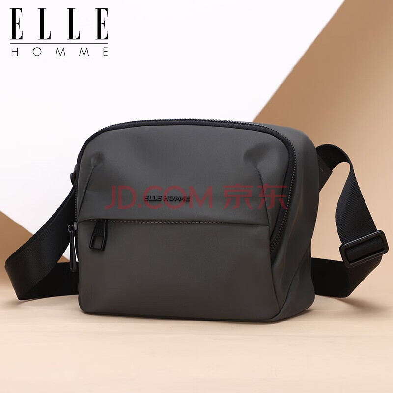 商品相册:ELLE HOMME男士单肩包 潮流轻便帆布斜挎包 防泼水休闲手机包男包08332灰色生日礼物送男友第