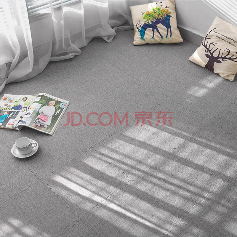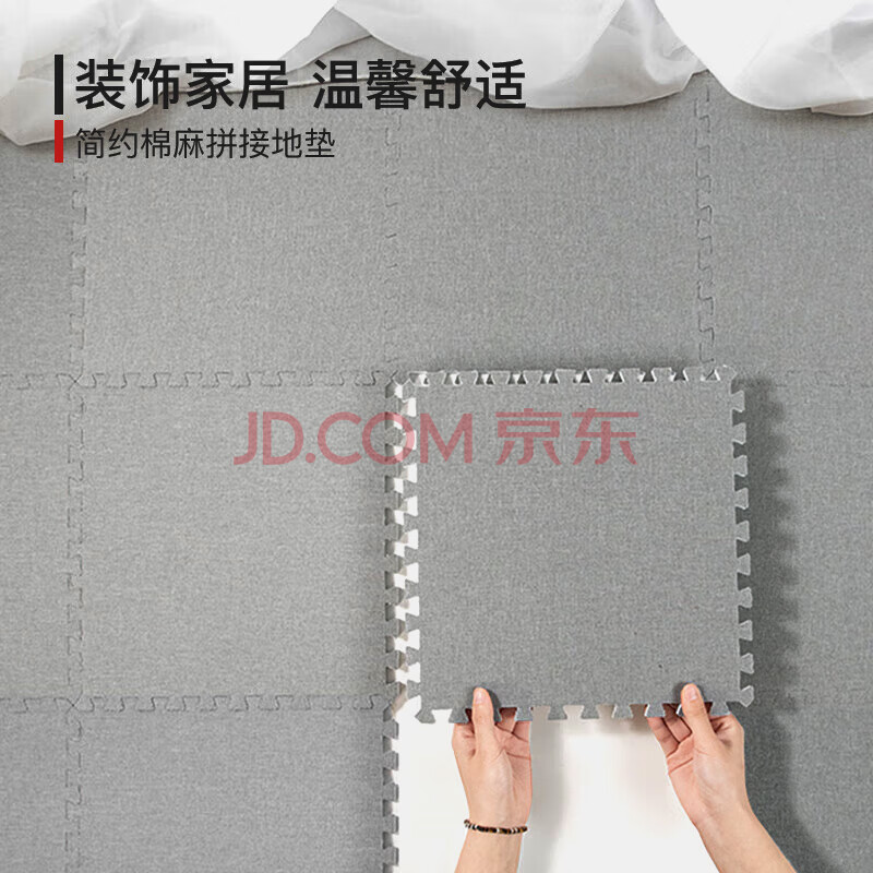 商品相册:富居棉麻质感拼块地毯四季满铺客厅卧室隔音隔凉防滑30cm10片装麻灰第