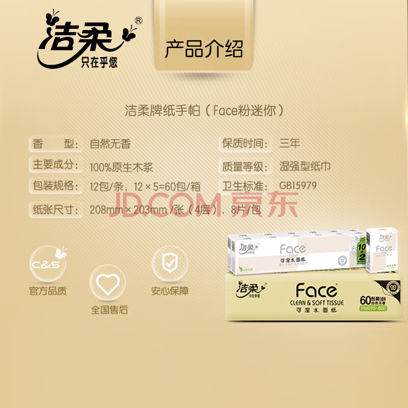 商品相册:洁柔手帕纸 粉Face4层8片12包*5条纸巾小包经典无香柔韧 整箱销售第1张/共7