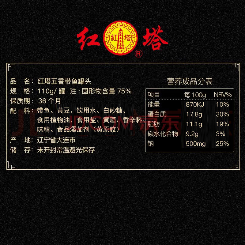 商品相册:红塔 带鱼罐头110克×6 即食0添加防腐剂五香味刀鱼方便海鲜熟食海产第