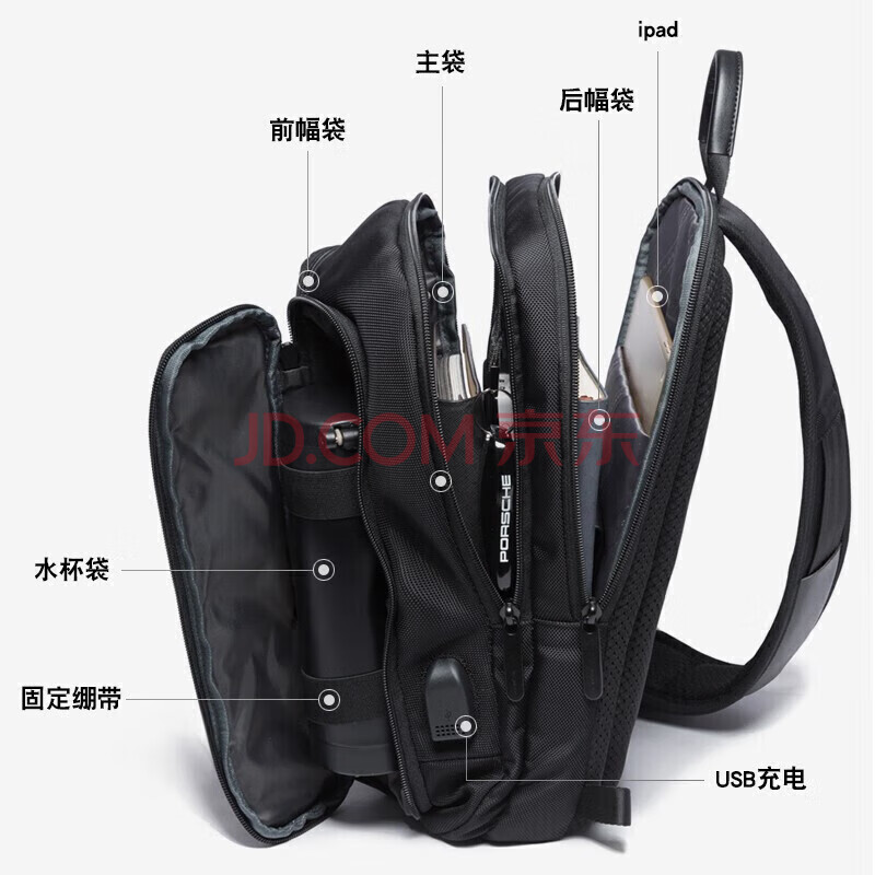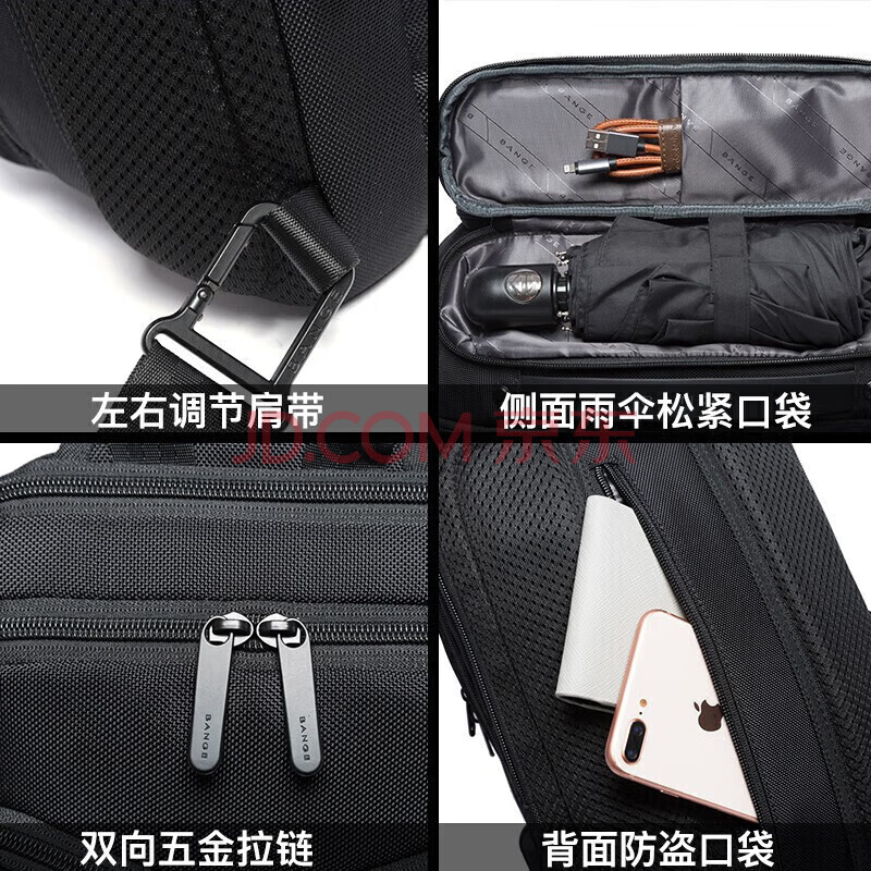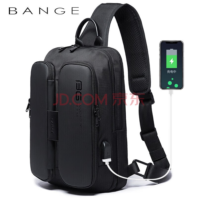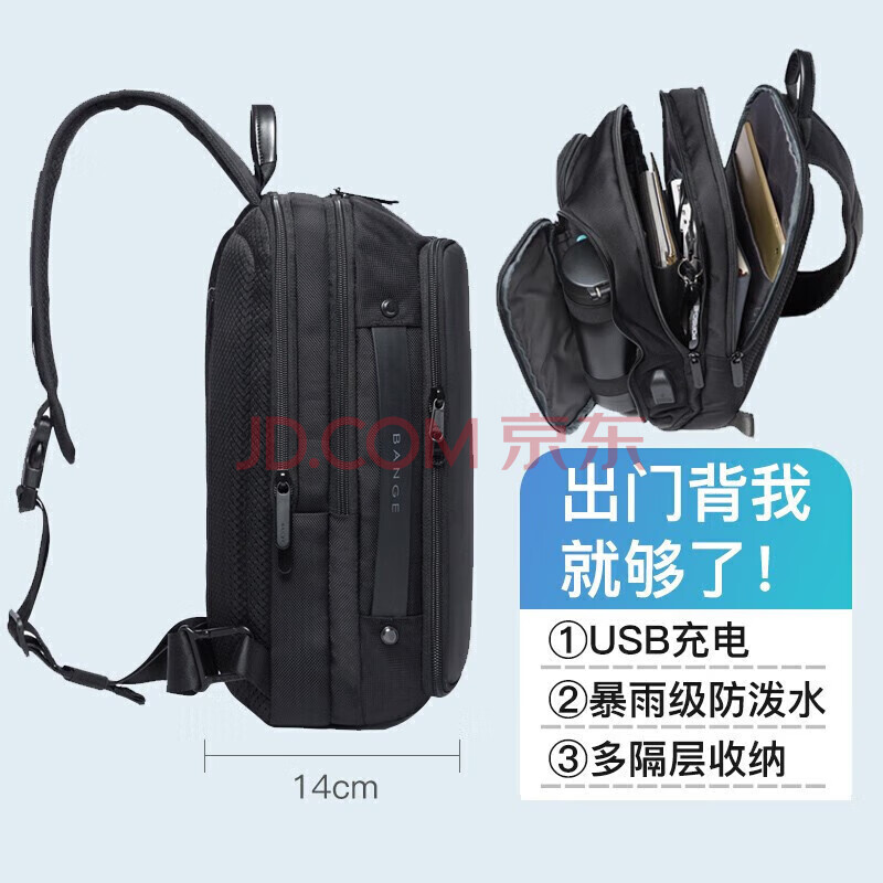 商品相册:班歌 胸包男旅行单肩包商务休闲多隔层大容量百搭11英寸平板斜挎包黑第
