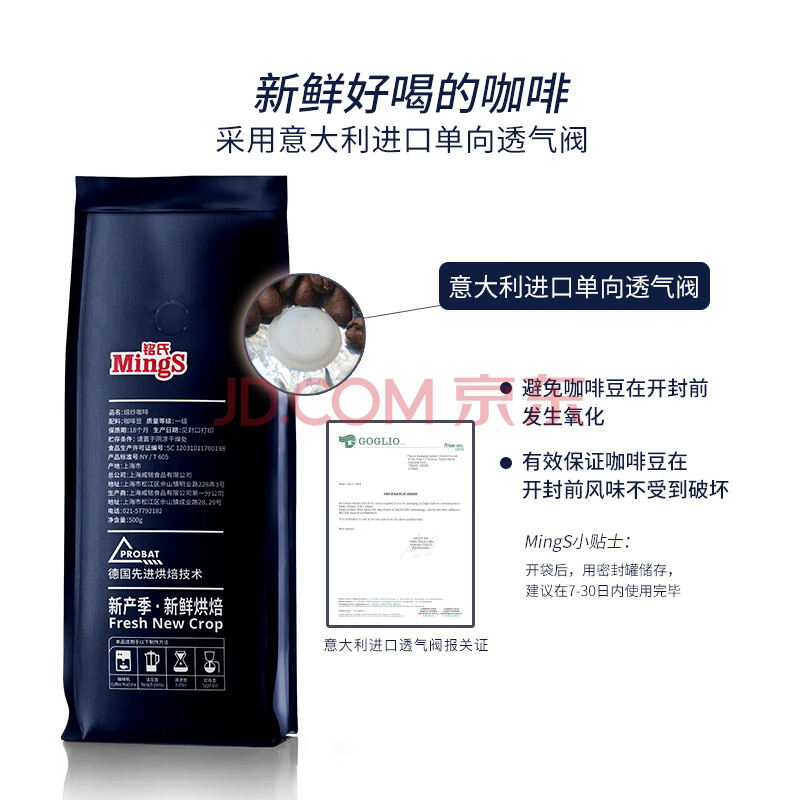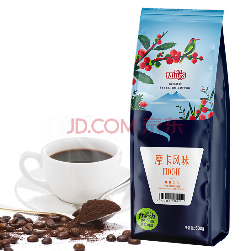 商品相册:铭氏(Ming's)摩卡风味咖啡豆 磨粉500g 阿拉比卡研磨手冲美式黑咖啡 中度烘焙第
