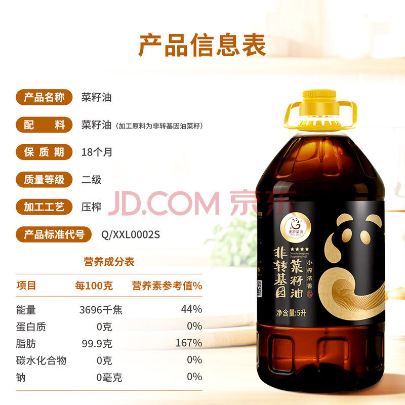 商品相册:天府菜油 【保真菜籽油】小榨工艺 四川浓香菜籽油 5L(四星)非转基因第
