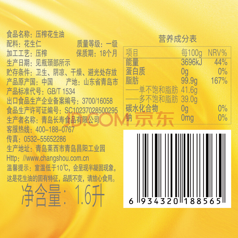 商品相册:第一坊【保真花生油】冷榨花生油1.6L 食用油 压榨一级 冷榨工艺 便携装第