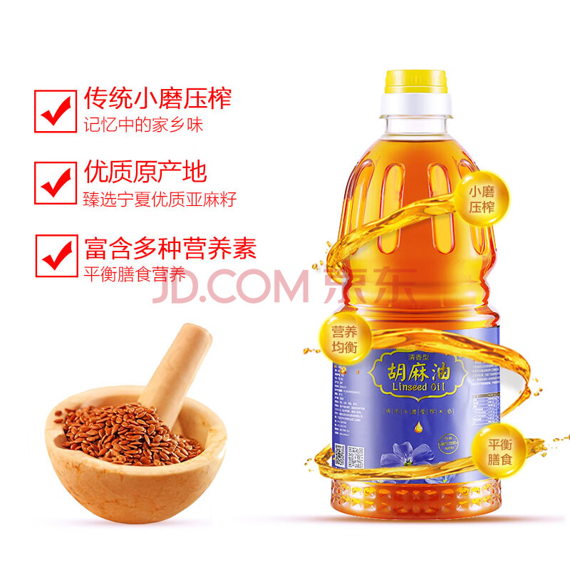 商品相册:索米亚 【保真胡麻油】清香型1.8L 宁夏传统小磨压榨 亚麻籽油食用油第