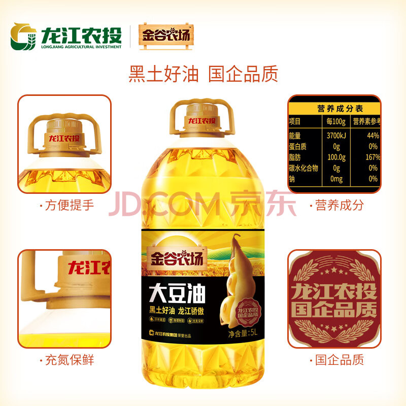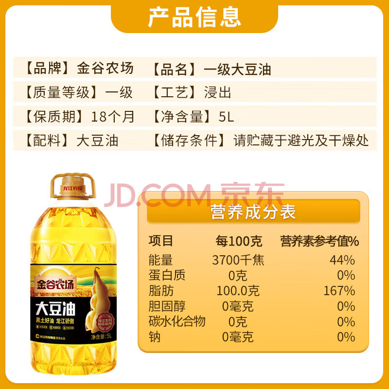 商品相册:金谷农场大豆油非转基因 一级大豆油5升 充氮保鲜 大豆油京东自营第
