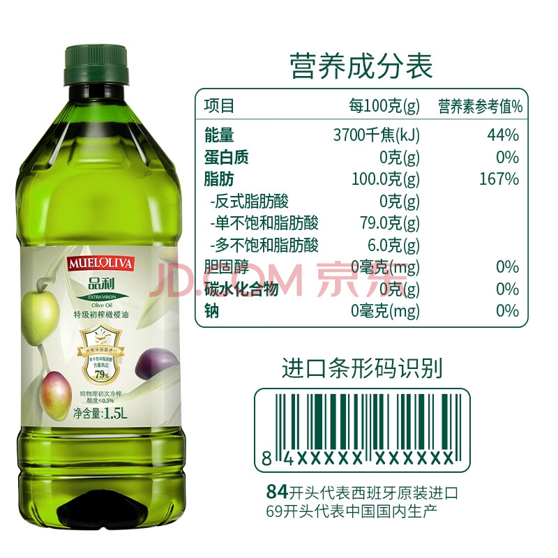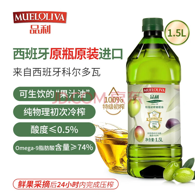 商品相册:品利(MUELOLIVA)【保真橄榄油】特级初榨橄榄油1.5L食用油西班牙炒菜进口送礼礼品第