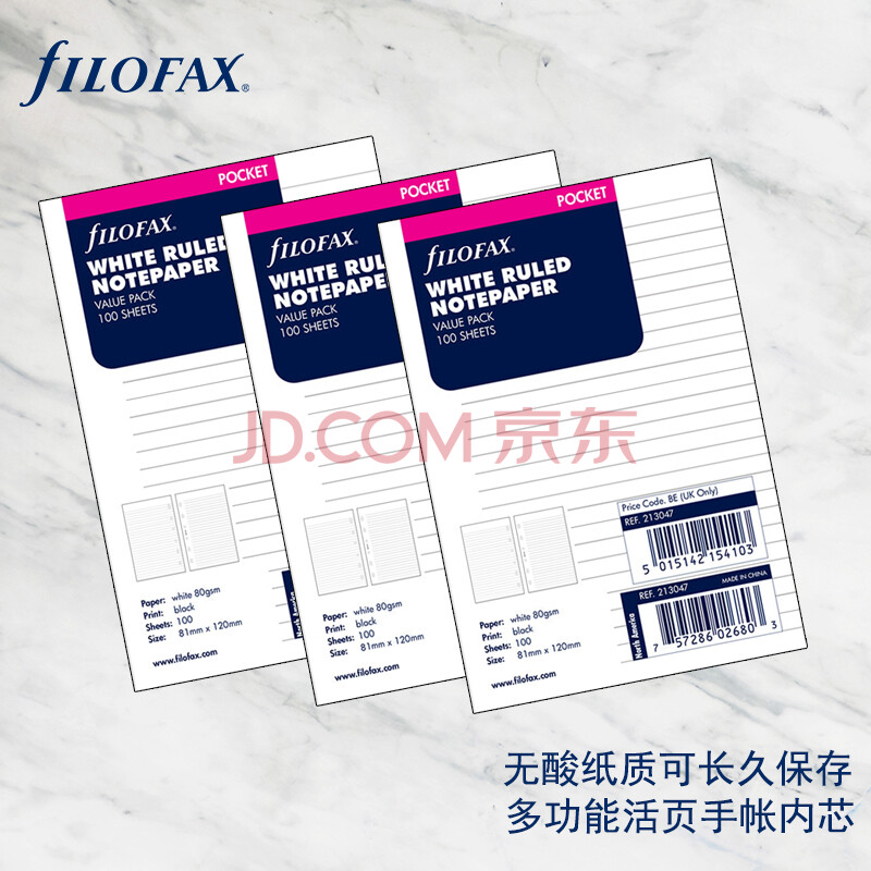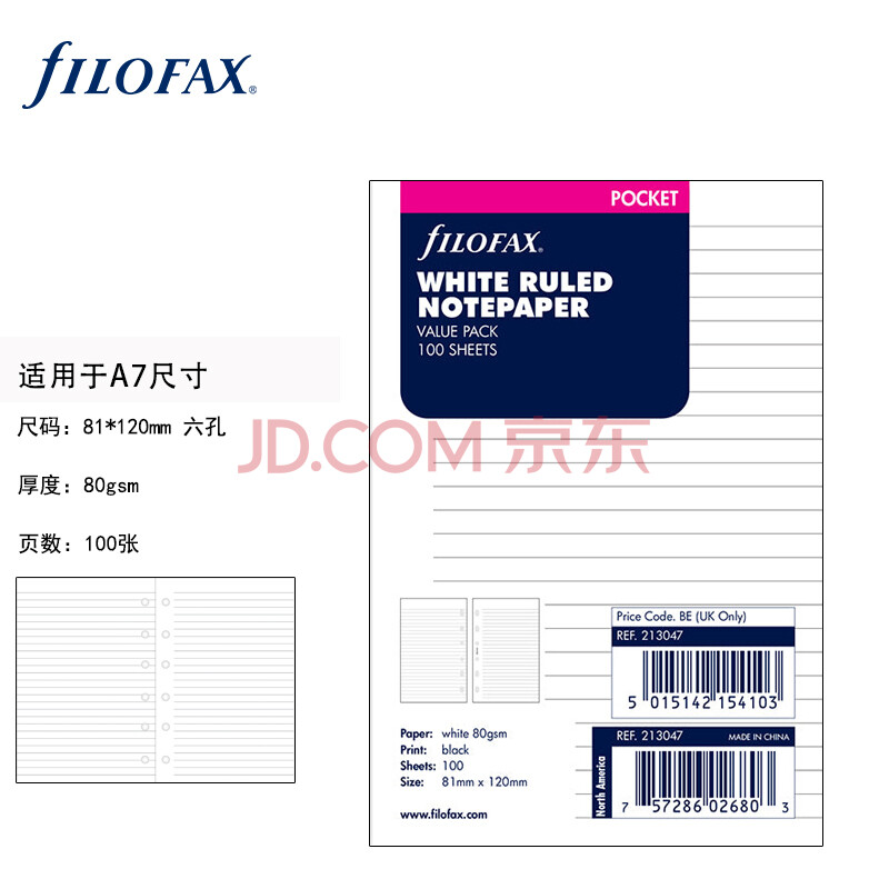 商品相册:Filofax 内页替芯 活页记事本替换芯 适用于A7口袋型 横线页 内芯 213047第