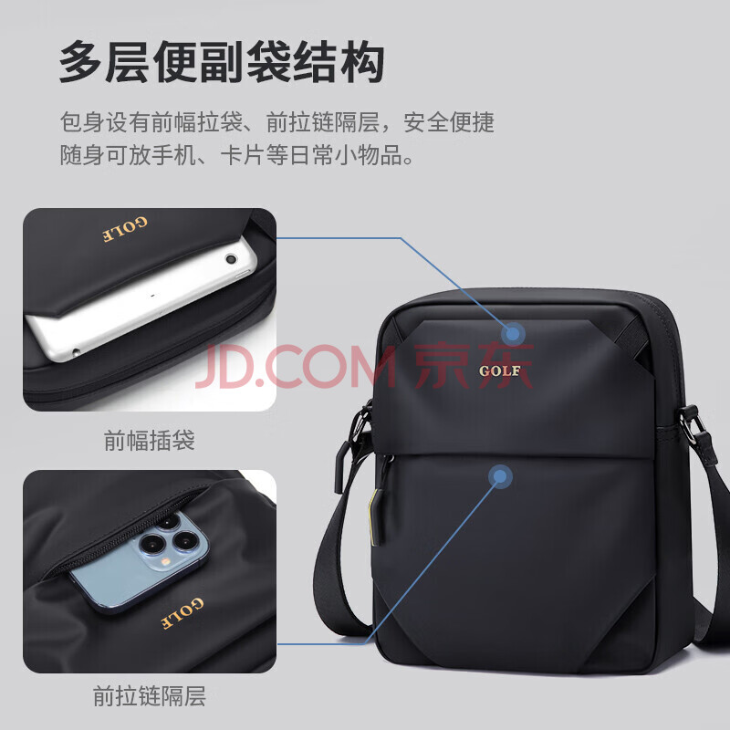商品相册:高尔夫(GOLF)单肩包男士休闲斜挎包男轻便百搭随身ipad手机包防泼水挂包运动包第