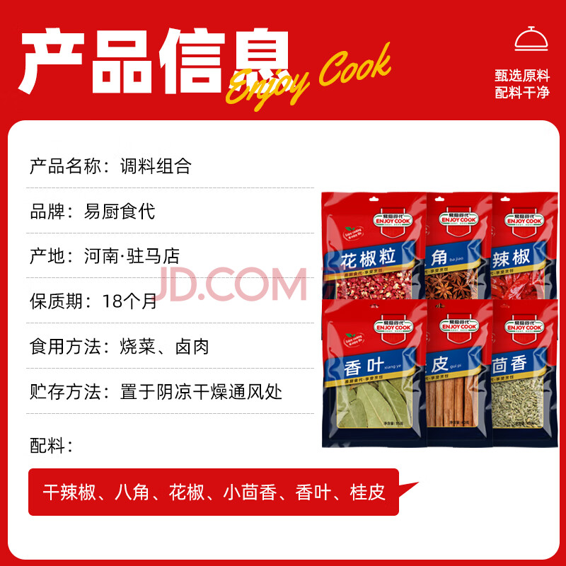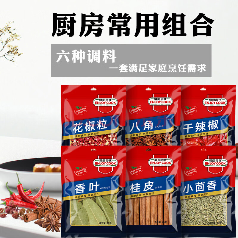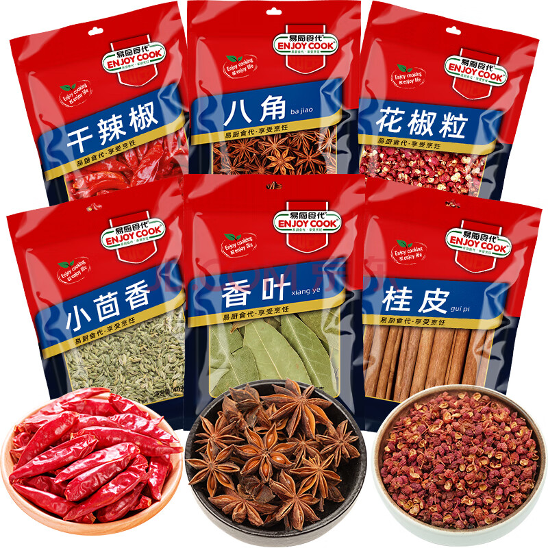 商品相册:易厨食代卤肉香料套装6袋组合花椒大料八角香叶桂皮茴香干辣椒炖肉料195克第