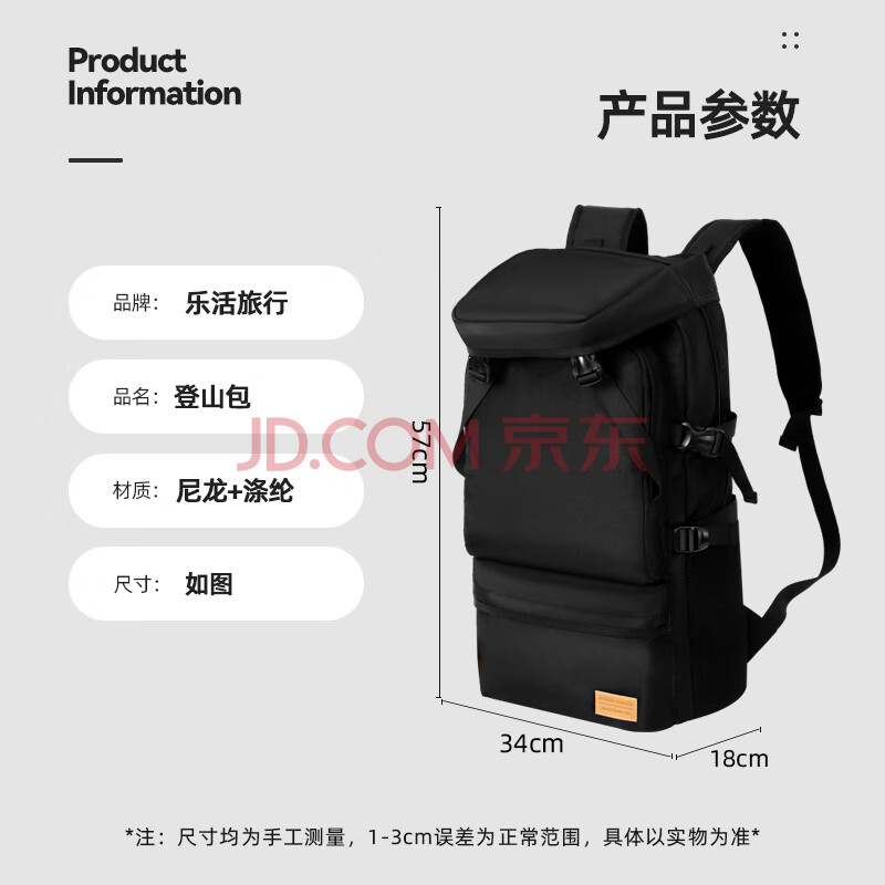 商品相册:乐活旅行登山包男双肩背包女户外徒步大容量书包男士专业爬山轻便装备全套第