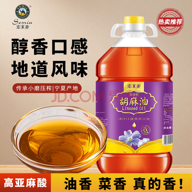 商品相册:索米亚【保真胡麻油】浓香5L 宁夏小磨压榨 亚麻籽油食用油源头直发包邮第