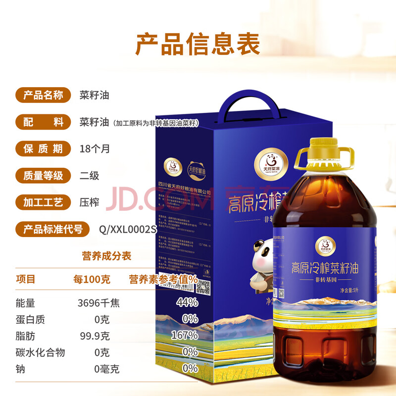 商品相册:天府菜油 冷榨工艺 高原菜籽油5L礼盒装 非转基因 四川风味国企出品第