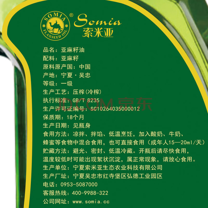 商品相册:索米亚【保真亚麻籽油】2L一级凉拌快炒食用油孕妇月子油 源头直发包邮第