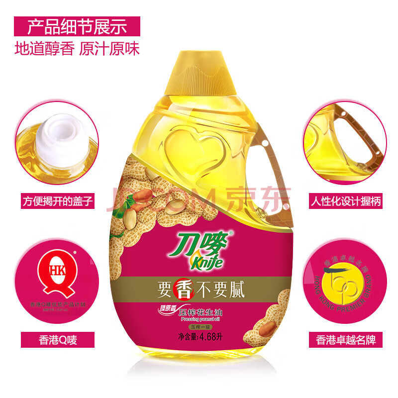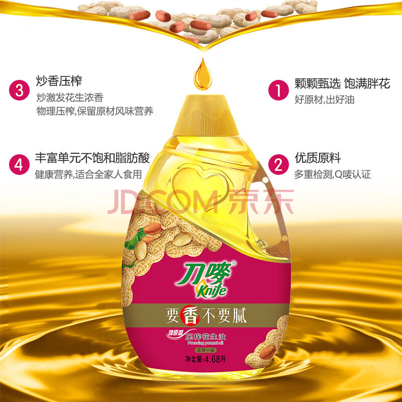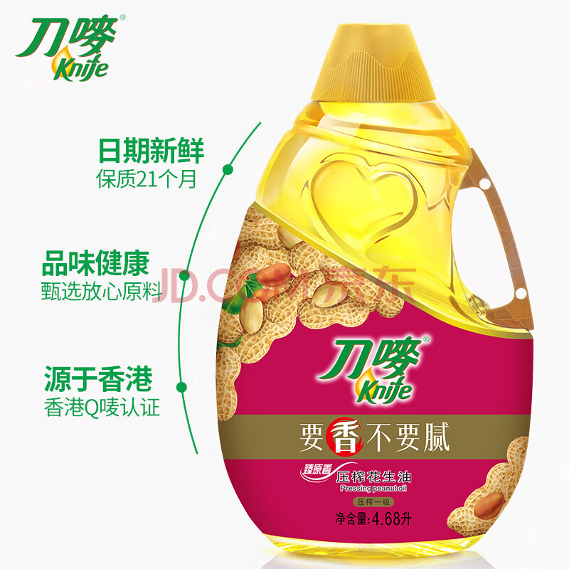 商品相册:刀唛(Knife)【保真花生油】4.68L 臻原香物理压榨一级精炼食用油 团购送礼第