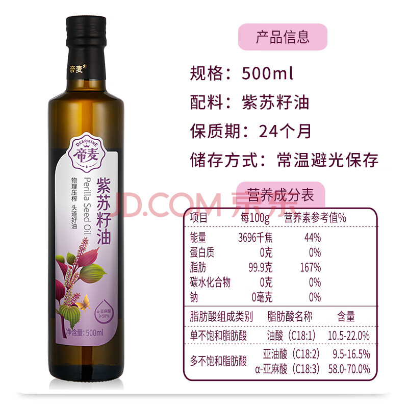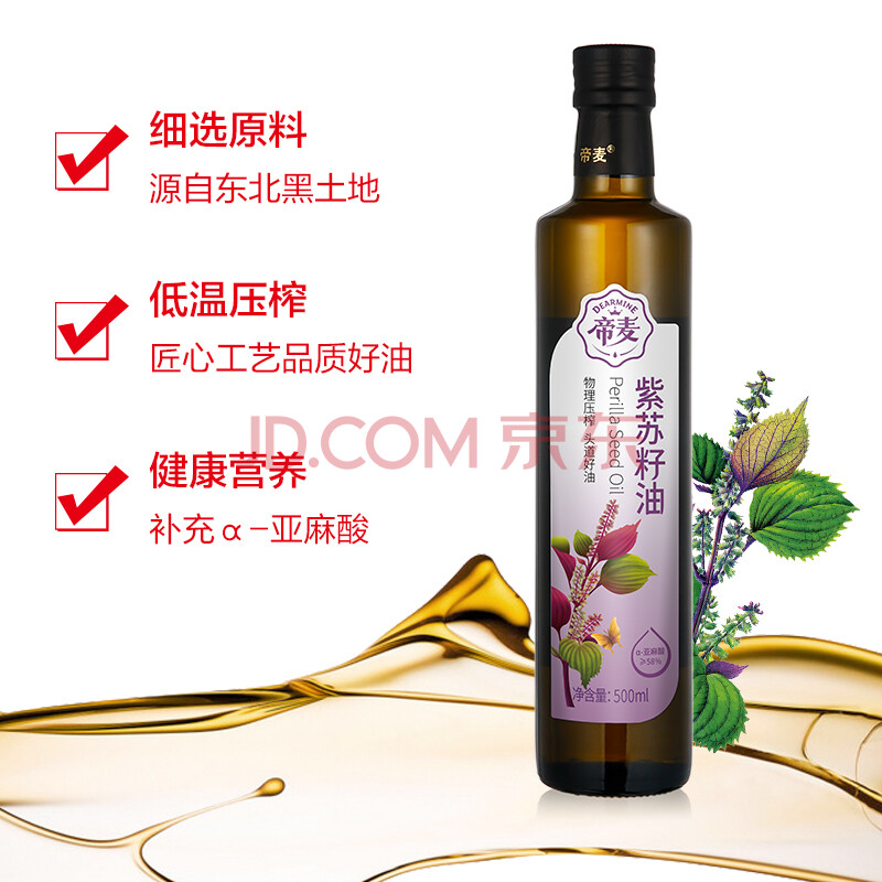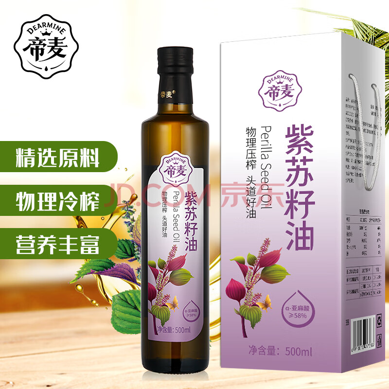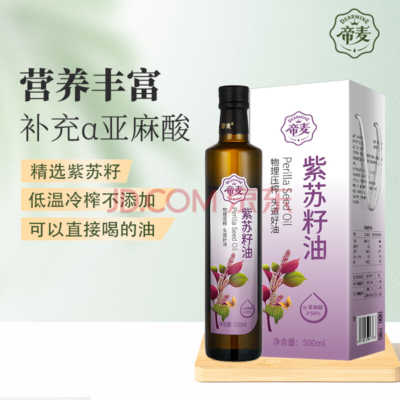 商品相册:帝麦紫苏籽油500ml 直饮热炒凉拌食用油 苏子油 苏麻油带礼盒年货送礼第