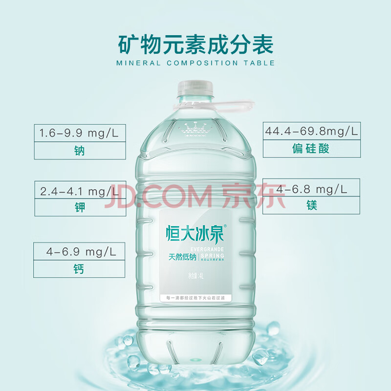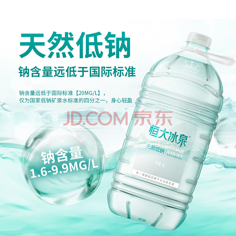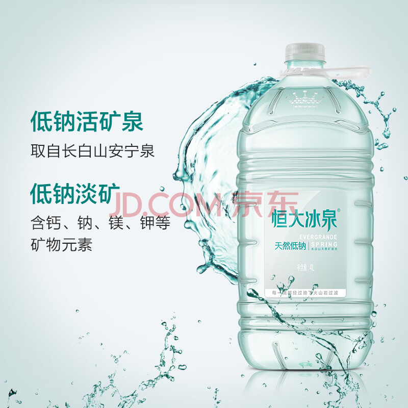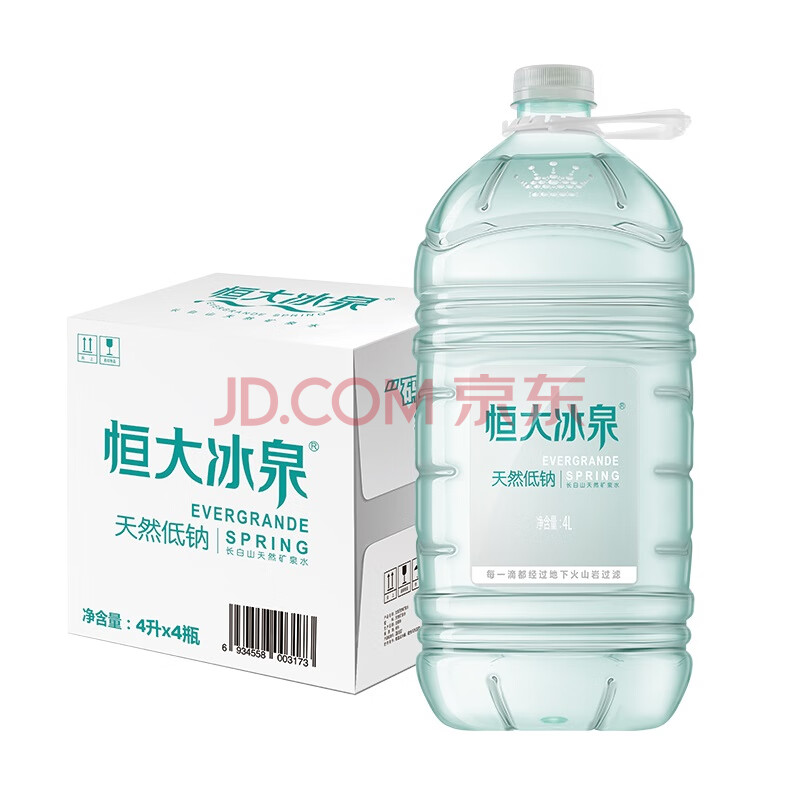商品相册:恒大冰泉 长白山饮用天然低钠矿泉水4L*4桶泡茶露营整箱装桶装水热门商品第
