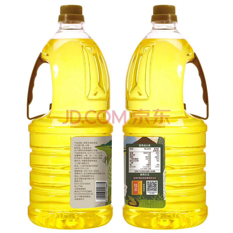 商品相册:初萃 中粮玉米胚芽油1.8L 食用油 一级物理压榨 充氮保鲜第