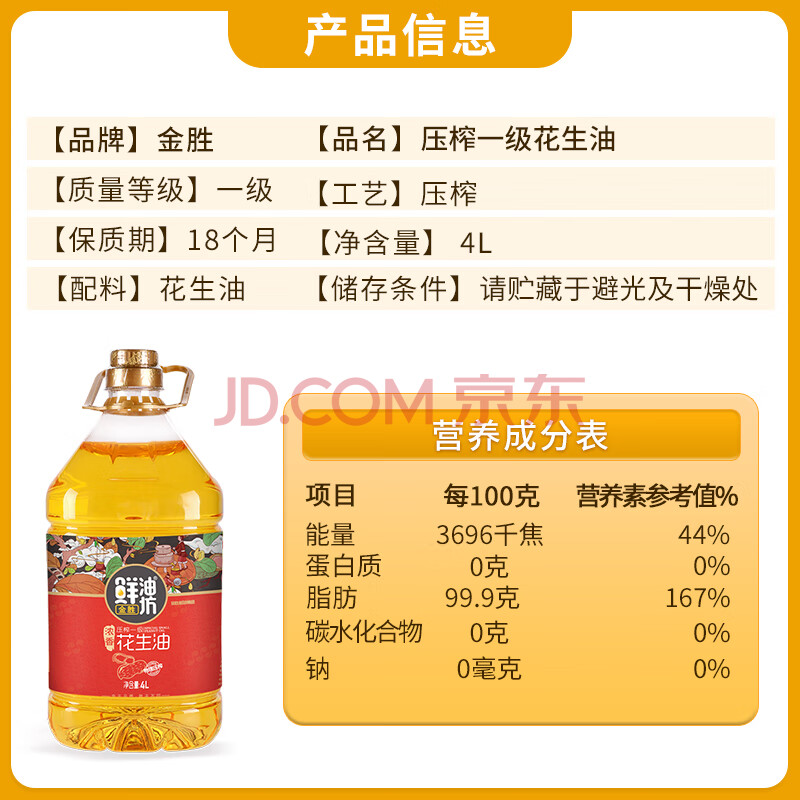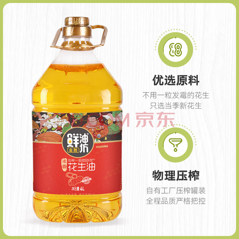 商品相册:金胜鲜油坊【保真花生油】压榨一级浓香花生油4L 年货礼品福利团购第