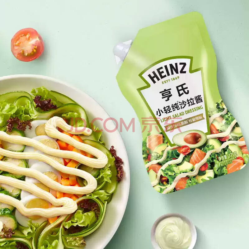 商品相册:亨氏(Heinz) 沙拉酱 小轻纯沙拉脂肪减半蔬菜水果沙拉寿司酱175g*3袋第