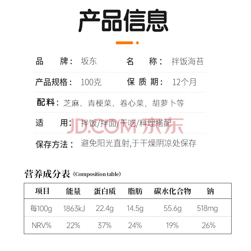 商品相册:坂东海苔拌饭料100g 儿童芝麻海苔碎 米饭伴侣 日式寿司饭团食材第