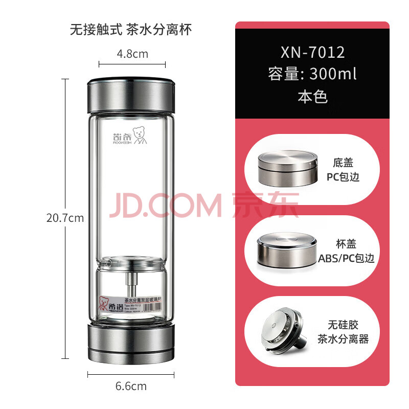 商品相册:希诺双层玻璃杯磁吸式茶水分离杯子男高档茶杯水杯XN-7012本色 300mL第