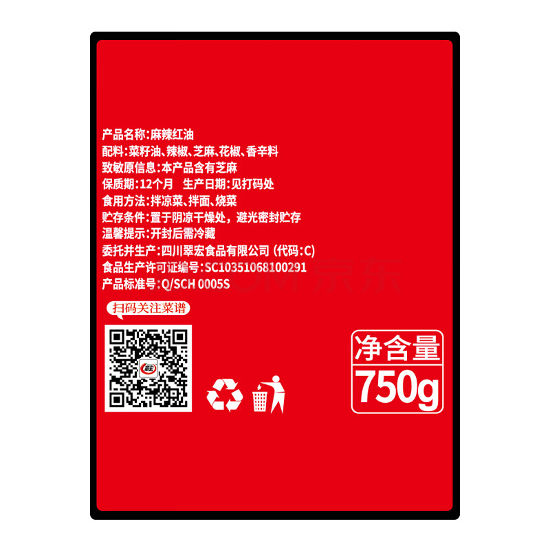 商品相册:翠宏 调味料 麻辣红油750g 油泼辣子 凉拌下饭 辣椒酱 辣椒油 第
