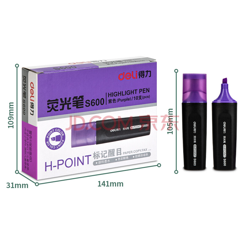 商品相册:得力(deli)S600 斧头荧光笔重点醒目标记笔 手帐可用水性记号笔 (紫)30支第