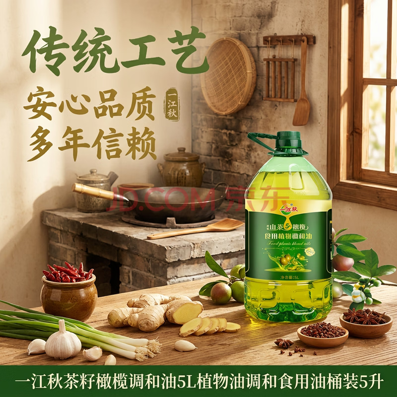 商品相册:一江秋茶籽橄榄调和油5L植物油调和食用油桶装5升第