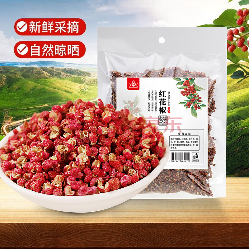 商品相册:川珍红花椒250g袋装 干麻椒火锅食材卤肉炖肉调料家庭商用装香辛料第