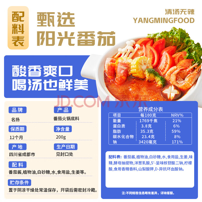 商品相册:名揚名扬番茄火锅底料200g清汤调味品酸甜可口麻辣烫第