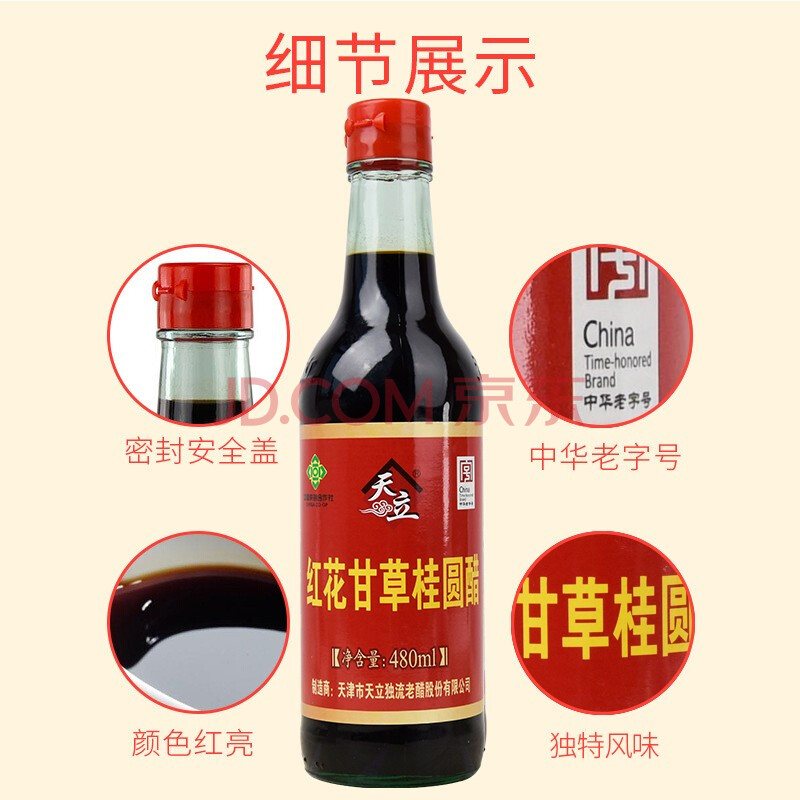 商品相册:天立红花甘草桂圆醋480ml可以喝的醋腌蒜醋中华老字号第