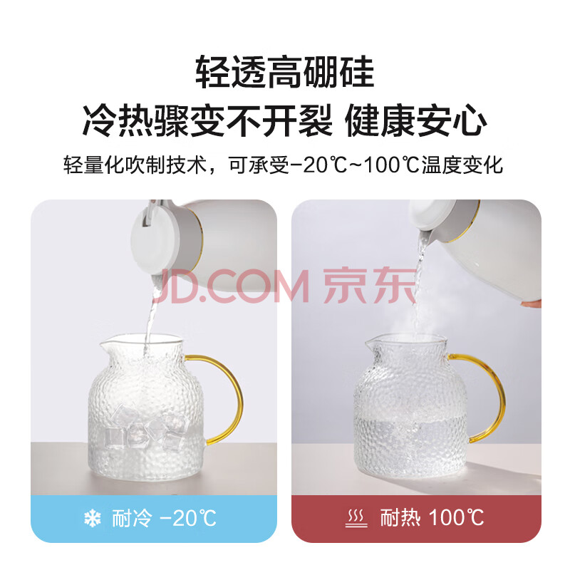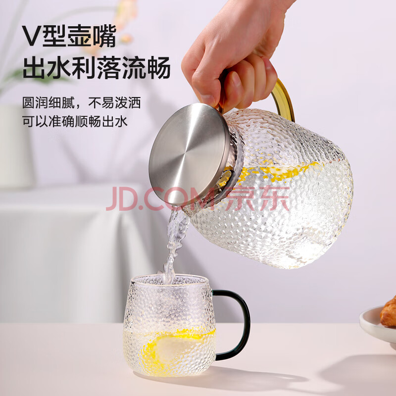 商品相册:京东京造 凉水壶 耐热耐高温玻璃冷水壶茶水分离泡茶杯1.2L第